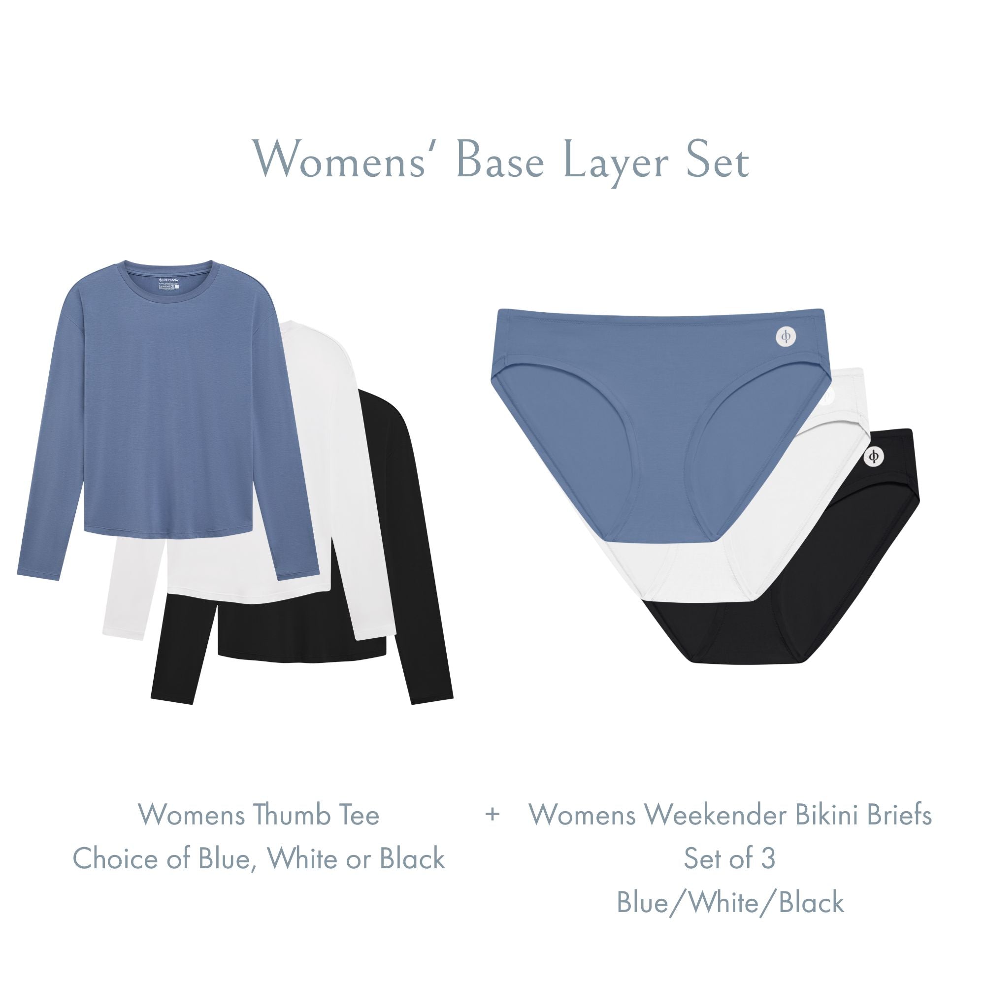 The Thumb Tee features thumb holes to keep sleeves in place under jackets and jumpers - no bunching, no fuss. The Weekender Bikini Briefs offer our FormFlex™ seamless fit that moves with your body, with no digging, no visible lines, and no irritation.