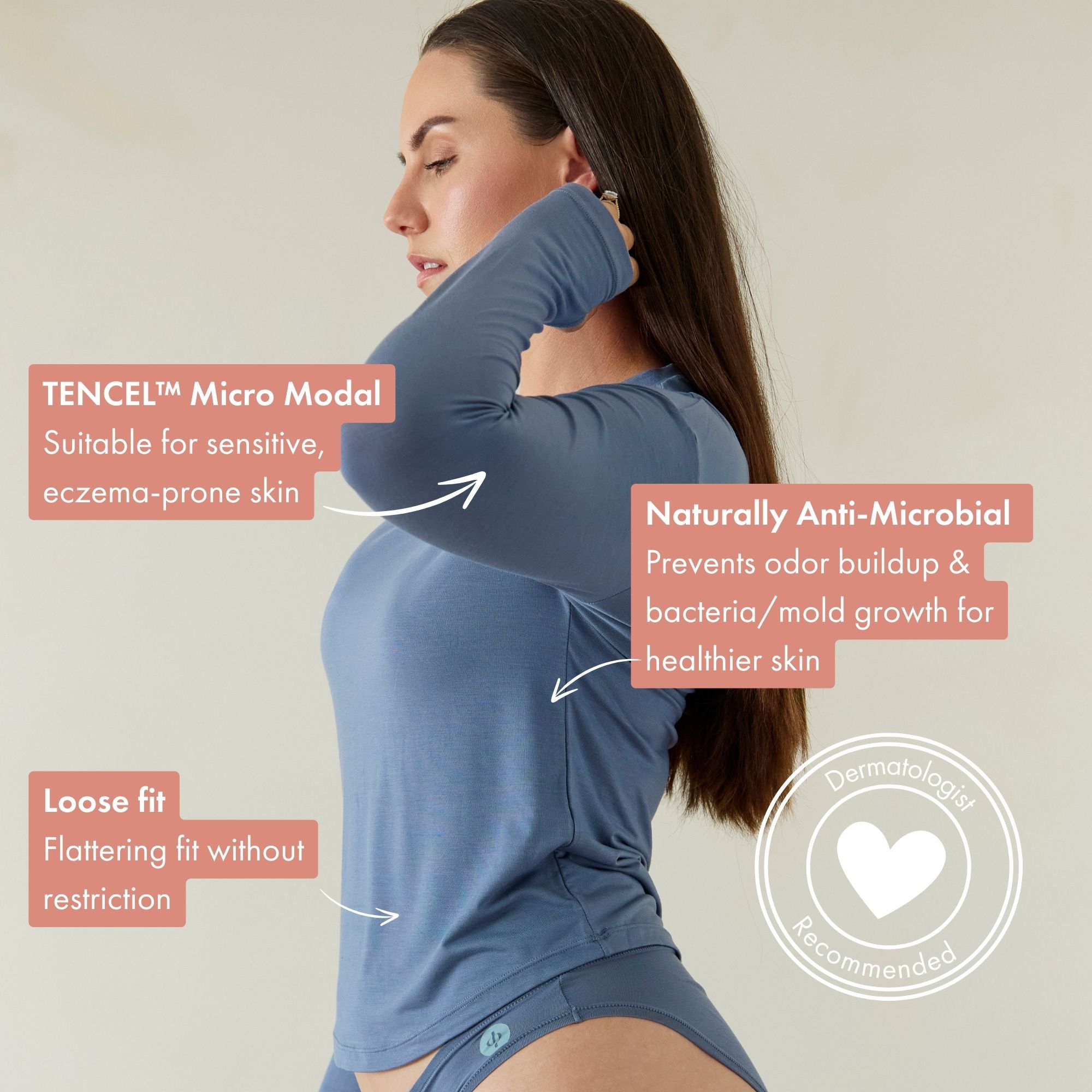TENCEL™ Micro Modal - breathable, moisture-wicking, and silky-soft against your skin. Temperature-regulating to keep you comfortable from morning to night, whether you're layering up or keeping it simple.